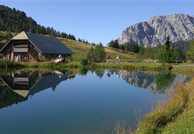 Die komplett erneuerte Casera spiegelt die antike Architektur wider und die Realisierung wurde durch die sorgfältige Wiederherstellung der Steine, die die ursprünglichen Mauern bildeten, konkretisiert. Zurück zur Malga Ielma di Sotto, links hinauf zur Forca di Jelma und hinunter zur Casera Pieltinis casera und dann ins Sauris-Becken (CAI Nr. 218).