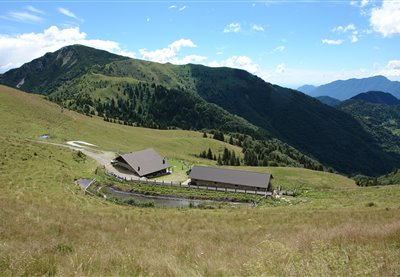 The structure is surrounded by an actual natural botanical garden, featuring great yellow gentian, wild gladiolus and carnations. The homonymous mountain appears as a grassy pyramid from which the viewer can observe the entire Friuli region. The top of the mountain houses the small Church of the Redeemer. Near the malga is the start of the downhill trail.