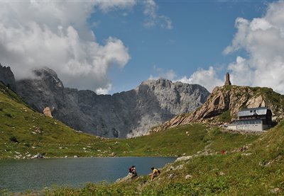 Le Alpi Carniche hanno in serbo molteplici sorprese per gli esploratori più attivi. Una è indubbiamente il Lago Volaia (Wolayersee) sul fronte carinziano del crinale principale delle Alpi Carniche nei pressi del Passo di Monte Croce Carnico. Nelle giornate di sole le acque scintillano di color turchese mentre le cime della Hohe Warte, Seewarte o Seekopf si specchiano sulle calmi acque. Si tratta di una particolarità geologica, in quanto il lago non è alimentato da nessuna sorgente. Nella dolina, formatasi già nell’Era Glaciale, si accumulano le piogge e le acque del disgelo che dovrebbero disperdersi fra le rocce, ma non lo fanno, con grande gioia dell’uomo. La vista sull’idilliaco lago montano è incantevole. Per ore gli amanti della natura potrebbero sedere sulla terrazza della Wolayerseehütte, ammirare il lago e assaggiare la gustosa merenda a base di prelibatezze regionali. Tuttavia, l’apprezzata meta escursionistica ha molto altro da offrire. Il rifugio vanta alcune stanze e camerate e rappresenta un punto base importante per gli escursionisti di lunga percorrenza dell’Alta Via Carnica e per gli alpinisti appassionati. Ben due ferrate conducono da qui alla Hohe Warte. Inoltre, gli escursionisti dilettanti potranno apprendere informazioni importanti sulla nascita di questo incantevole paradiso montano percorrendo senza difficoltà il geotrail. La Wolayerseehütte è raggiungibile a piedi in due ore e mezza dalla Hubertuskapelle nella valle Wolayertal oppure in tre ore partendo dalla Untere Valentinalm sul Passo di Monte Croce Carnico.